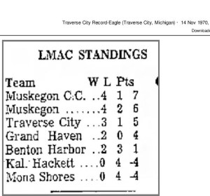 At 7:00 pm ET on each game date of the 1970 season we will be posting the newspaper article for that game from the Muskegon Chronicle and, in some cases, from the gridiron opponents newspaper.