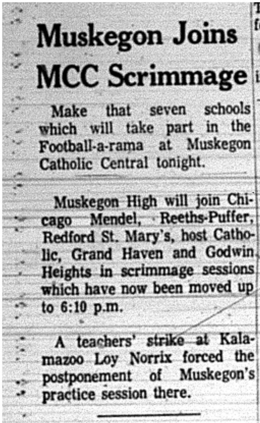 - Game 9 – Muskegon High School – Class A (LMAC) – 1970 Record: 7-2
