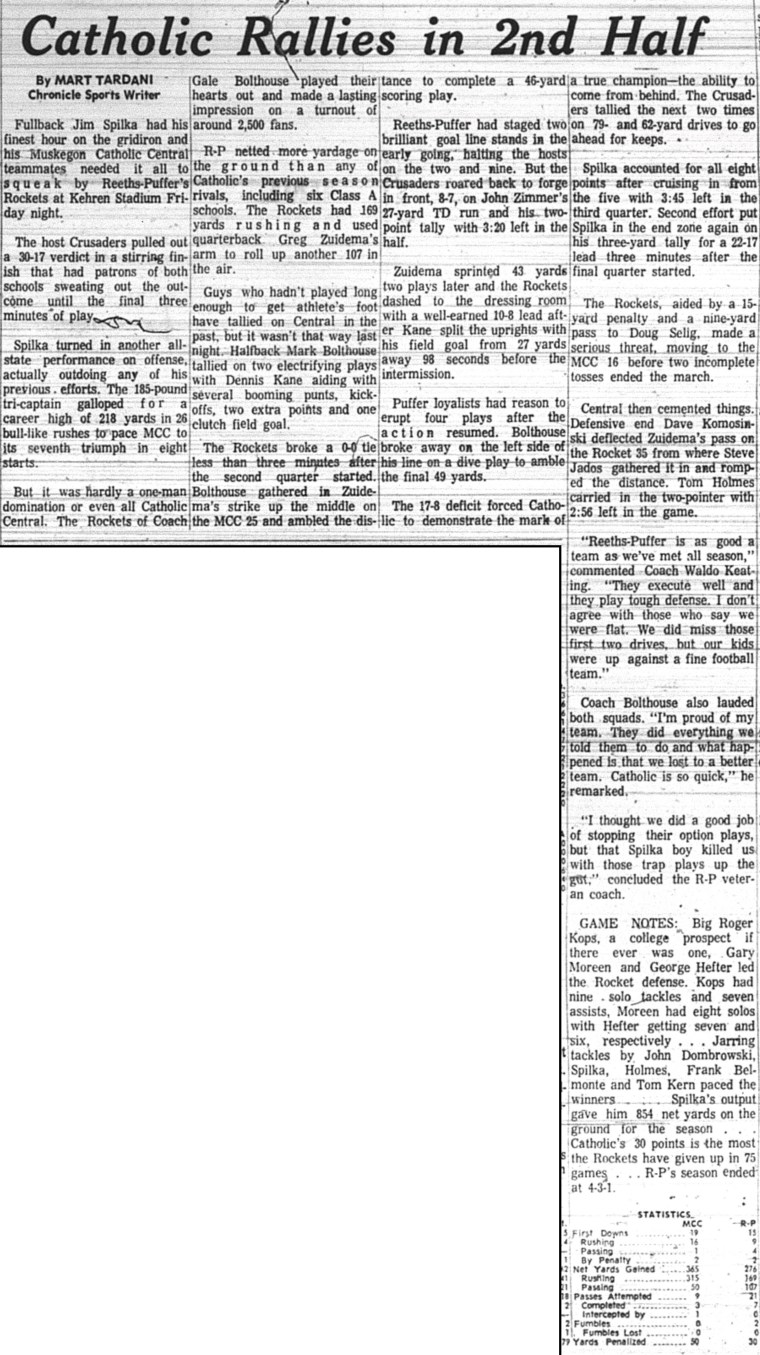 - After 7 games, 6 against Class A opponents, game 8 against R-P was only the second and final Class B team on the 1970 MCC Football schedule.