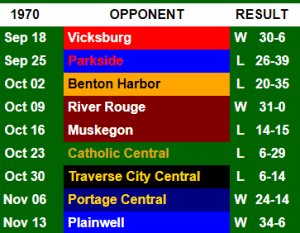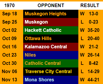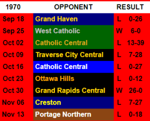- In 1970, GRU played three common MCC opponents, Traverse City Central, Grand Rapids Catholic and Portage Northern and lost to all three.