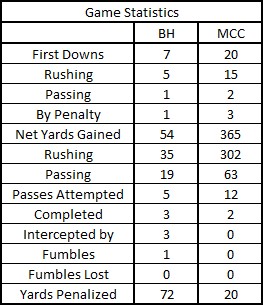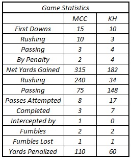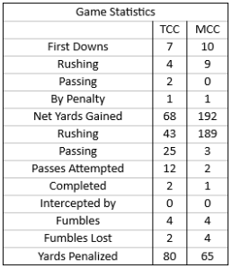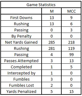 - The win against GRU was the second straight win in the 1970 season for Class B MCC against a Class A opponent.